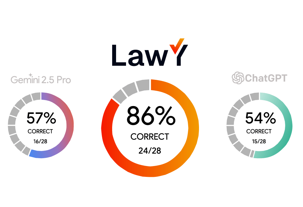 When tested on a broad range of typical legal questions across multiple areas of law, LawY achieved 86% overall accuracy in the UK, compared with 57% for Gemini 2.5 Pro and 54% for ChatGPT 4.1. By only sharing comparative results, LawY aims to empower lawyers to make informed decisions about their AI research tools. They are committed to publishing future evaluations that will both empower users and also inform the future development of its platform.